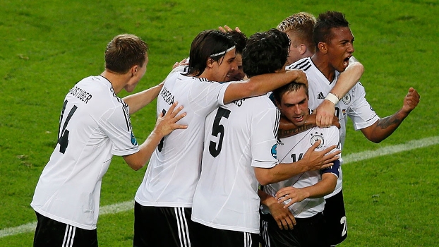 Alemães comemorando gol de Lahm. (Fonte: Reuters)